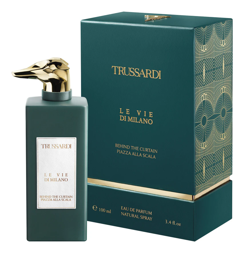 Behind The Curtain Piazza Alla Scala — благородный и стильный древесно-пряный унисекс-парфюм, выпущенный в 2020 году под маркой итальянского бренда модных аксессуаров Trussardi в рамках ароматической коллекции Le Vie Di Milano Collection. Культовые ароматы этой коллекции приглашают в ольфакторное путешествие, предлагая вновь пережить неповторимую атмосферу улиц Милана.