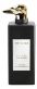 Флакон из атласного стекла имеет матовый черный оттенок и украшен скульптурной золотистой металлической крышкой, которая точно воспроизводит миниатюрную версию головы итальянской борзой левретки.