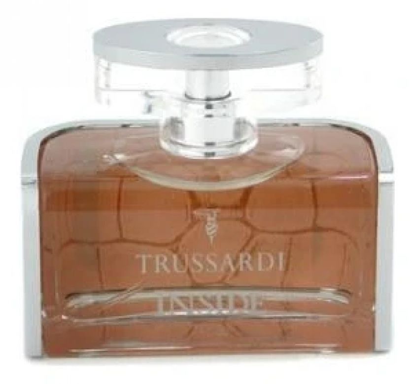 Новинкой в мире элитного парфюма стал аромат Trussardi Inside («Труссарди. Инсайд»), который был создан для сильных и уверенных в себе женщин. Этот парфюм вышел в свет в 2006 году. Если вы хотите покорить окружающих и произвести впечатление на мужскую половину, этот аромат прекрасно вам подойдет. Композиция аромата выполнена в удивительном цветочном стиле, с участием нот восточных ароматов. В композицию входят ароматы бергамота с древесиной, нежного мускуса и амбры и заряжающей энергией жгучего кофе. В качестве нот сердца выступают: свежий бергамот, нежная роза, элегантная фрезия, и душистый гелиотроп. Схожим по аромату парфюмом является Bvlgari Voile De Jasmin, страстный и пылкий запах. Флакон аромата Trussardi Inside выполнен в виде прозрачного, прямоугольного футляра с изящной отполированной крышкой.