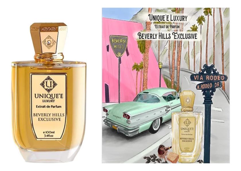 Аромат Unique'e Luxury Beverly Hills Exclusive создан в 2021 году и предназначен мужчинам и женщинам. Уникальная композиция рассказывает о Калифорнии, южном солнце, яркой жизни Беверли Хиллз.