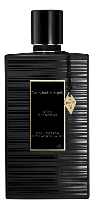 Строгий флакон чёрного стекла, поперечной «сатиновой» отделки и нарочито простой формы, созданный фантазией дизайнера Carre Basset, скрывает в себе глубокий и мягко-комфортный Van Cleef & Arpels ReveD'Encens, унисекс-аромат восточной древесной группы.