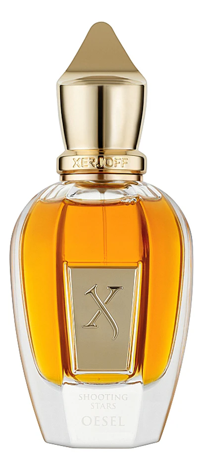 Xerjoff Shooting Stars Collection: Oesel («Ксерджофф. Коллекция падающих звезд: Оэзель») - это универсальный аромат, он подходит для мужчин и женщин, относится к семейству восточно-цветочных ароматов. Букет тонких ароматов составлен по древним традициям и рецептам. Латуневая табличка на флаконе выполнена в стиле art-deko, на ней размещено изображение падающей звезды. Флакон помещен в богатую лакированную шкатулку, здесь же находится сертификат, подтверждающий оригинальность.