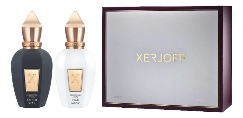 Shooting Stars Set — великолепный подарочный набор из двух роскошных унисекс-ароматов (2*50 мл) Amber Star и Star Musc, звездами которых являются легендарные арабские афродизиаки амбра и мускус. Набор представлен итальянским нишевым парфюмерным брендом Xerjoff.