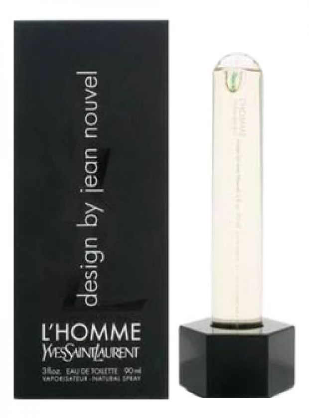 Популярный дизайнер и архитектор Жан Нувель видоизменил традиционную форму флакона парфюма YSL L'Homme и представил его в дерзком, провокационном облике. Древесно-мускусный, пряный аромат YSL L'Homme design by Jean Nouvel остался без изменений. Впечатляет само оформление аромата. Жан Нувель – автор таких работ, как Институт арабского мира в Париже и Фонд Картье. Дизайнер представил парфюм во флаконе в виде лабораторной пробирки, которая размещается на черном восьмиугольном постаменте. Внутри постамента плавает поплавок с логотипом YSL зеленого цвета. Жан Нувель хотел показать новые стороны души мужчины помимо силы и мужества. Это нежность, мягкость и уязвимость. Лимитированный выпуск парфюма вышел в 2008 году. Верхние нотки: бергамот, лимон, имбирь. Белый перец, специи, лист фиалки и базилик – ноты сердца. Ветивер с Таити, бобы тонка и кедр – базовые аккорды.
