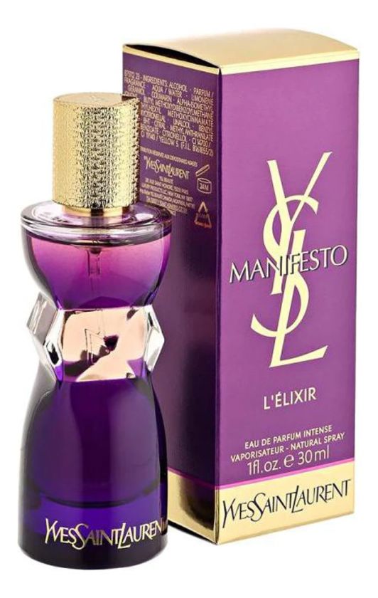 YSL Manifesto l'Elixir («Ив Сен Лоран. Манифесто Эликсир») – женская парфюмерная новинка, вышедшая в 2013 году. Женский букет представляет семейство восточных, с цветочным оттенком, композиций. Терпкий и теплый, этот осенний аромат дарит уют и расслабленность, ассоциируясь с мягкой золотой погодой, яркими лесами и меланхолической музыкой.
