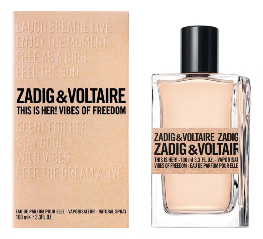 Zadig & Voltaire This Is Her! Vibes Of Freedom — элитная парфюмерная вода с цветочно-фруктовым ароматом для женщин, представленная в 2022 году популярным французским парфюмерным брендом Zadig & Voltaire. Яркий, освежающий и энергичный аромат This Is Her! Vibes Of Freedom заряжен духом свободы и вдохновлен красотой и гармоничностью окружающей природы.