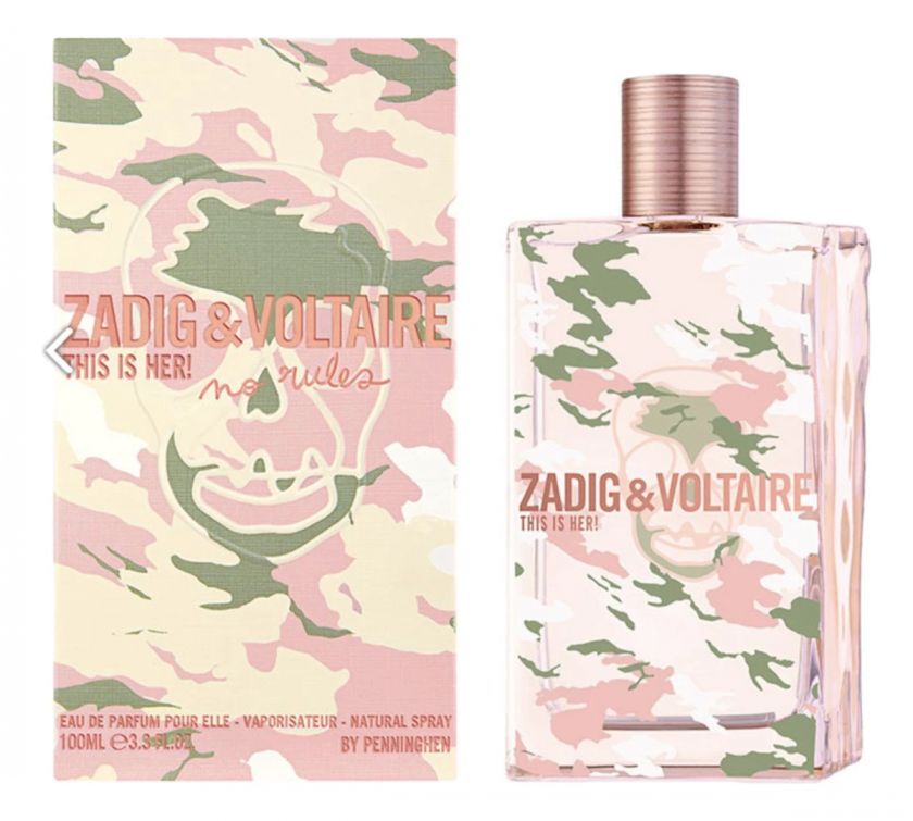 This Is Her! No Rules — парфюмерная вода класса люкс с древесно-цветочным ароматом для женщин, созданная в 2019 году французской парфюмерной маркой Zadig & Voltaire в сотрудничестве с парижской школой дизайна Пеннингейн. Парный аромат This Is Her! No Rules создан к 20-ти летнему юбилею французской марки и призван переосмыслить основы шика и отойти от канонов стиля и даже веяний моды.