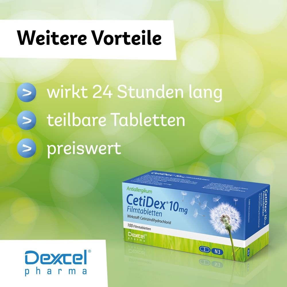 CetiDex® 10mg - антигистаминный препарат для лечения аллергических заболеваний. Содержит цетиризина дигидрохлорид, применяется для облегчения симптомов сезонного и круглогодичного аллергического ринита, крапивницы у взрослых и детей от 6 лет.