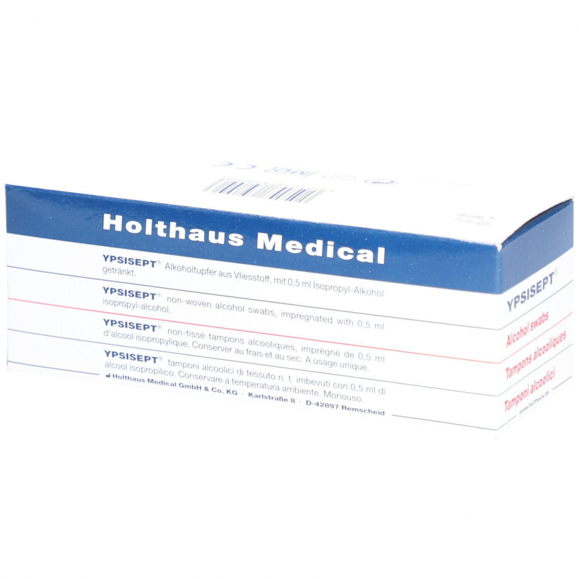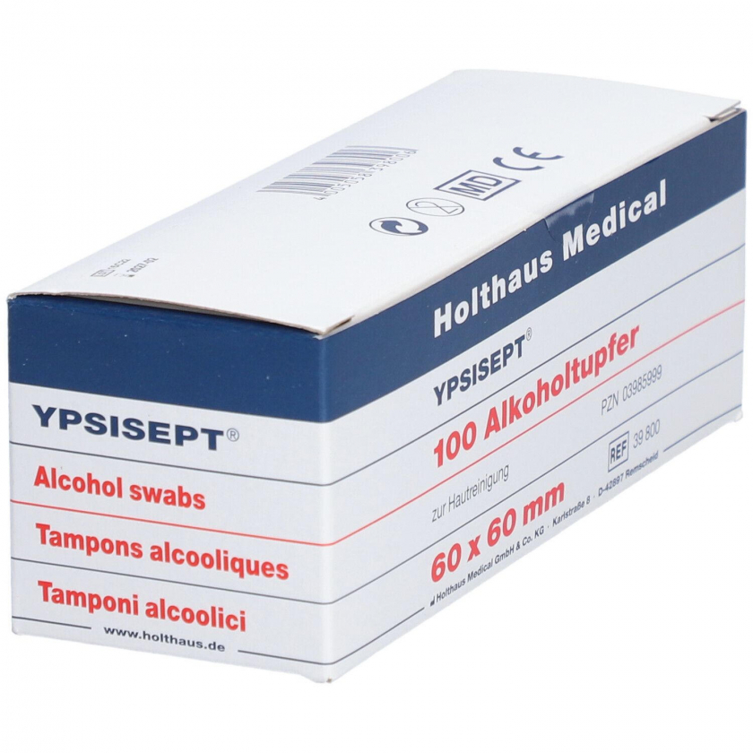 Алкогольные тампоны Ypsisept 25x65 мм для дезинфекции кожи перед медицинскими процедурами. Одноразовые стерильные салфетки, пропитанные изопропиловым спиртом (60-70%). Используются перед инъекциями, забором крови и установкой катетеров для предотвращения инфекций. Индивидуальная упаковка обеспечивает стерильность и предотвращает перекрестное загрязнение.