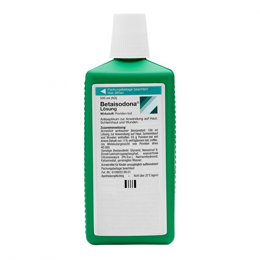 Betaisodona® Lösung - антисептический раствор на основе повидон-йода для дезинфекции неповрежденной кожи, слизистых оболочек и обработки ран. Применяется перед операциями, инъекциями, пункциями, для лечения ожогов, язв и инфицированных кожных заболеваний. Раствор используется как в неразбавленном виде, так и в различных разведениях для наружного применения.