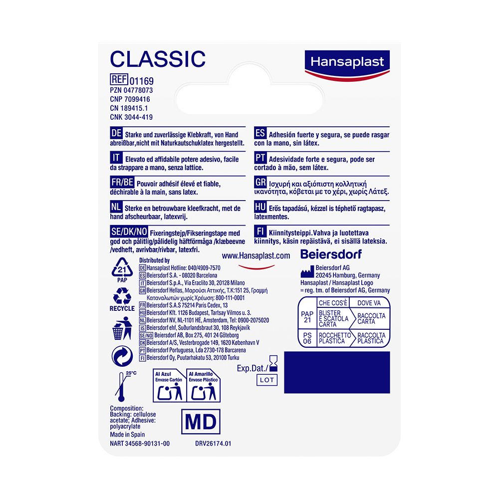 Hansaplast Fixierpflaster Classic | Pflasterrolle | Fixierung von Wundauflagen | 5m x 2,5 cm