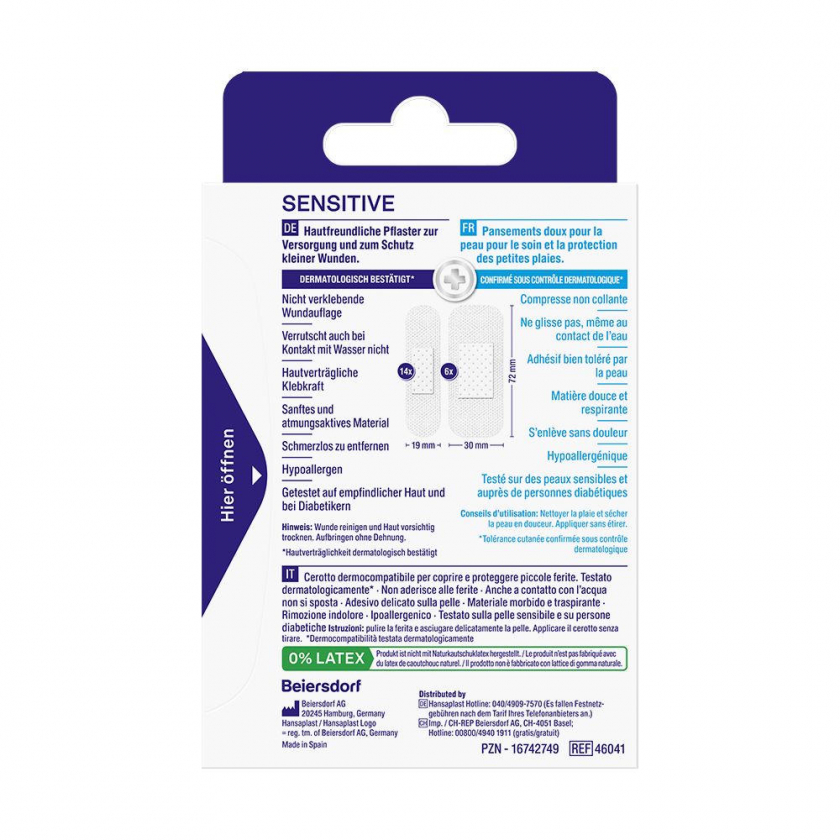 Hansaplast Sensitive - гипоаллергенные пластыри для чувствительной кожи, обеспечивающие бережную защиту ран. Пластыри изготовлены из мягкого, дышащего материала, не содержат латекс, защищают от грязи и 99% бактерий. Идеально подходят для ежедневного ухода за небольшими ранами и повреждениями кожи.
