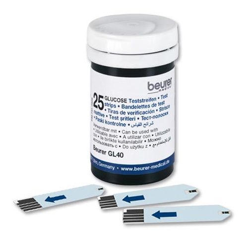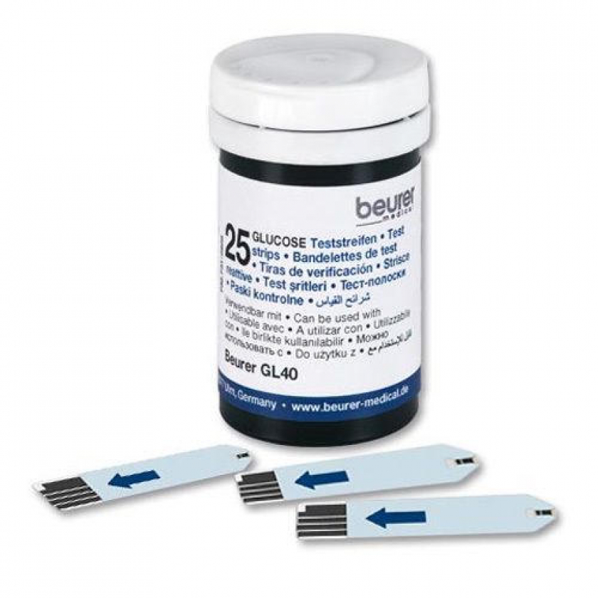 Тест-полоски Beurer GL40 для измерения уровня глюкозы в крови. Совместимы с глюкометром Beurer GL40, не требуют кодирования, минимальный объем крови 0,6 мкл. Упаковка содержит 100 тест-полосок в 4 баночках по 25 штук с индикатором свежести. После вскрытия годны 90 дней при соблюдении условий хранения.