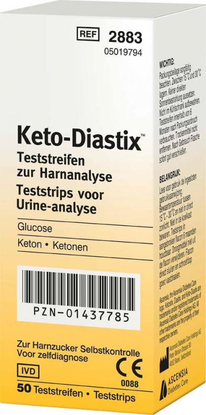 Keto-Diastix® - диагностические тест-полоски для анализа мочи на содержание глюкозы и кетонов. Используются для полуколичественного определения уровня глюкозы и кетонов в моче. Подходят для мониторинга состояния при диабете и кетогенных диетах. Продаются в упаковках по 6 штук.