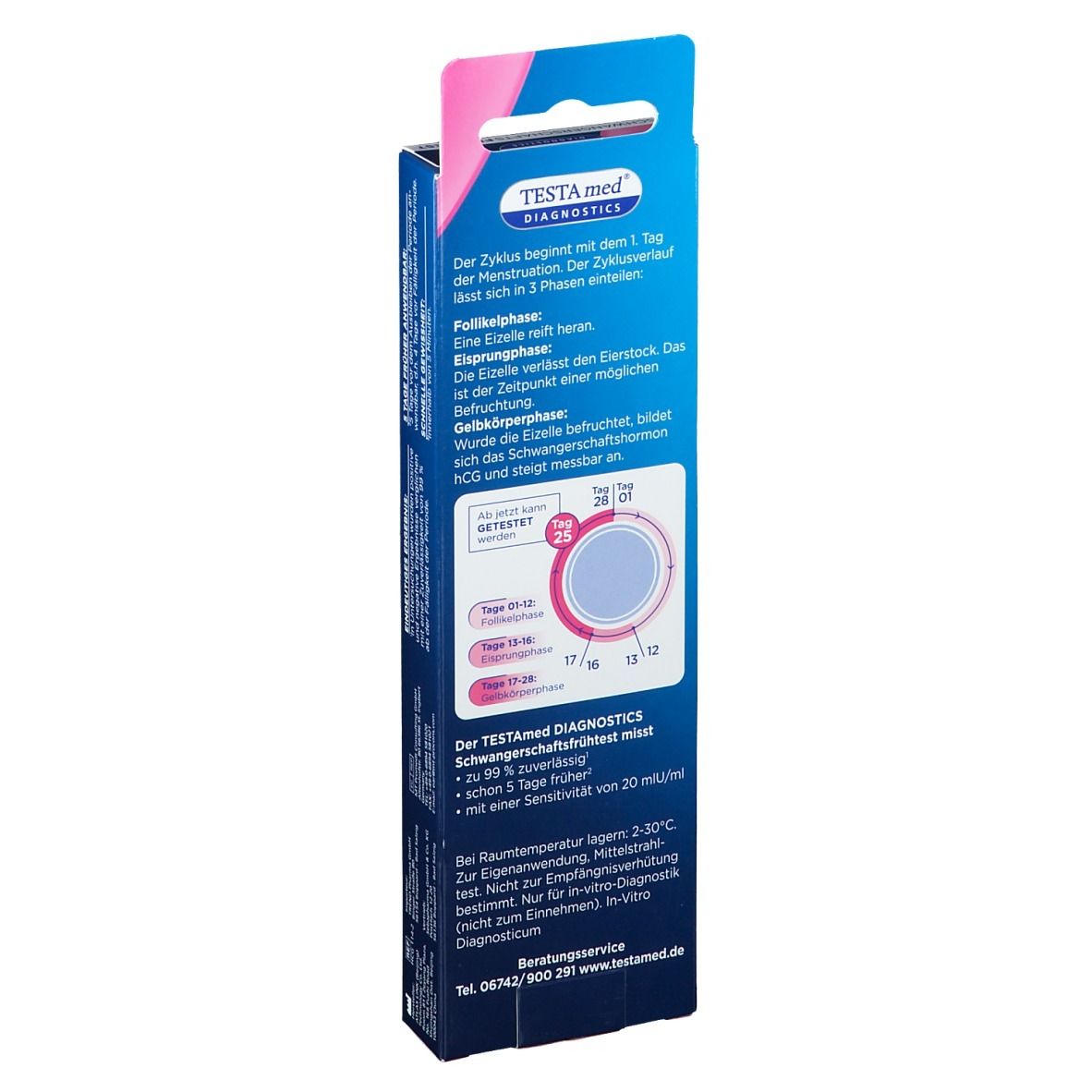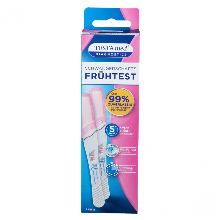 Чувствительный тест на беременность TESTAmed® для раннего определения беременности с точностью свыше 99%. Можно использовать уже за 4 дня до предполагаемой менструации. Определяет гормон ХГЧ в моче с чувствительностью 25 mIU/мл.