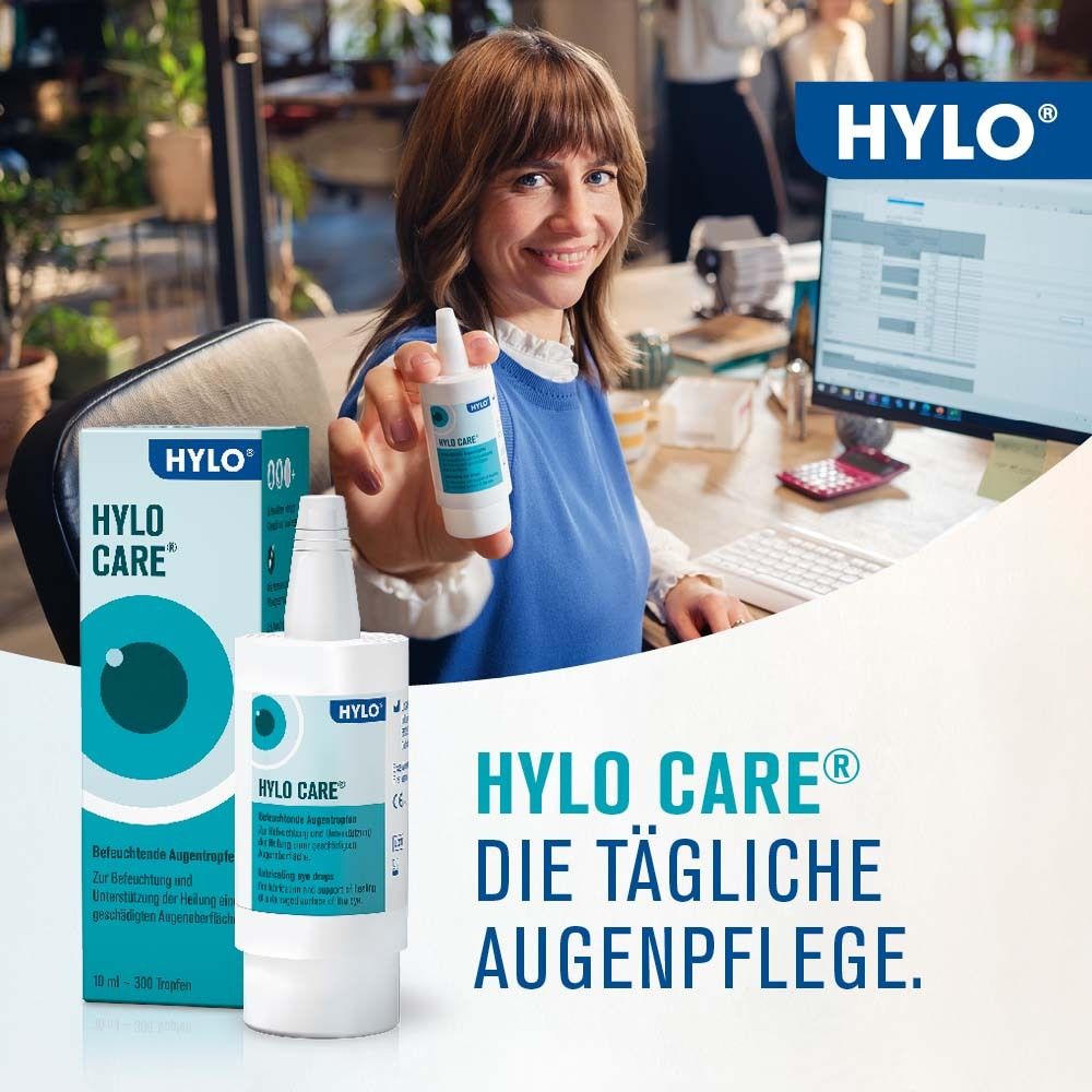 Глазные капли HYLO®-CARE для увлажнения и заживления поврежденной поверхности глаза при синдроме сухого глаза и после операций. Содержат декспантенол и гиалуроновую кислоту, не содержат консервантов, подходят для длительного применения и использования с контактными линзами.