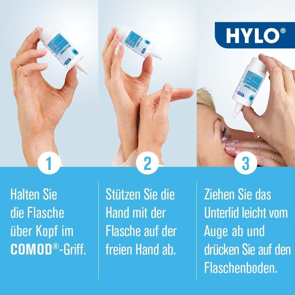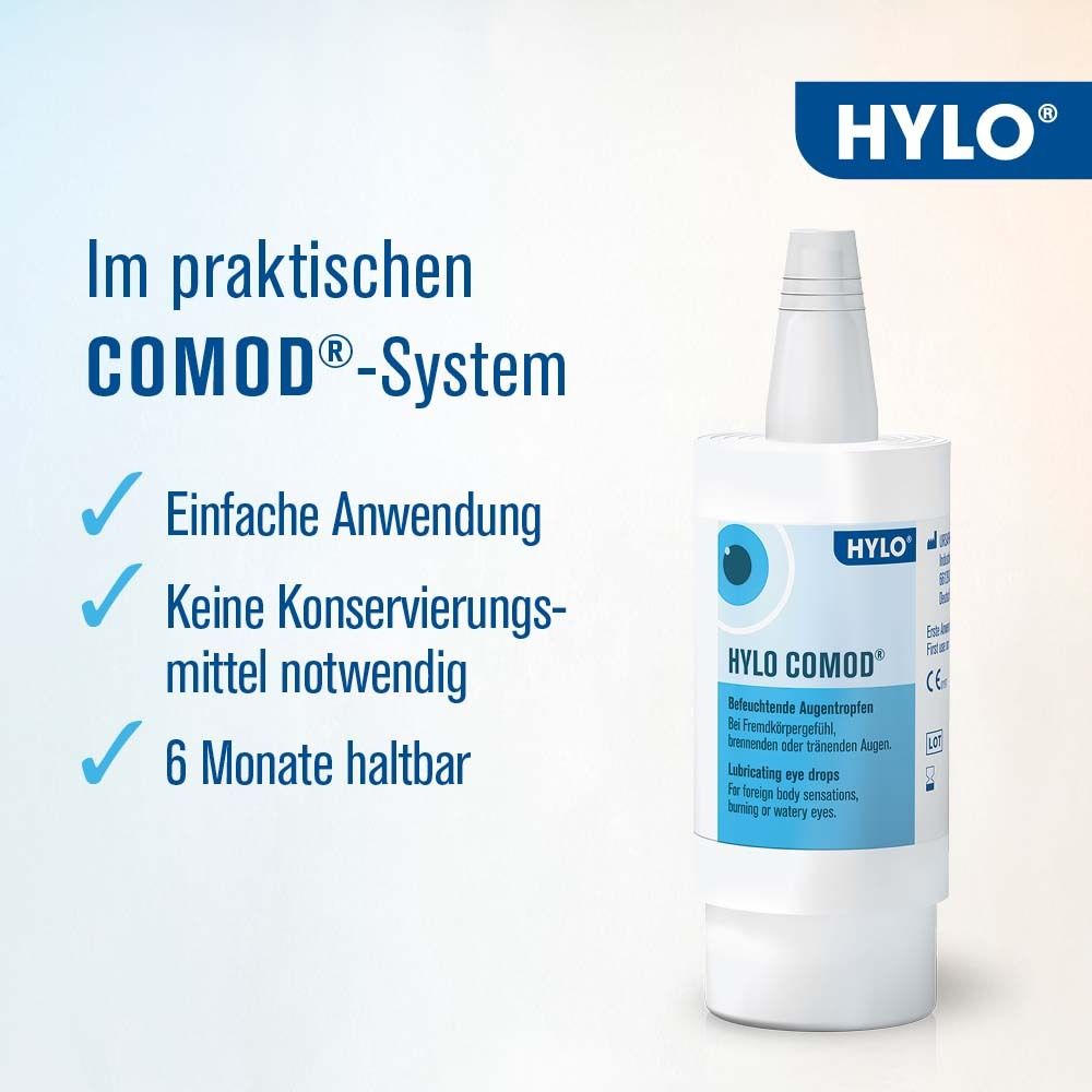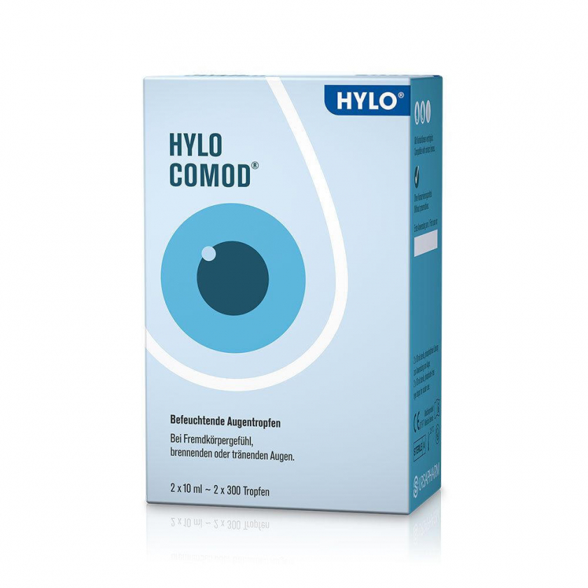 HYLO-COMOD® - глазные капли для лечения синдрома сухого глаза с 0,1% гиалуроновой кислоты. Без консервантов и фосфатов, совместимы с контактными линзами. Обеспечивают длительное увлажнение при умеренных и средних симптомах сухости глаз, покраснении, жжении и зуде.