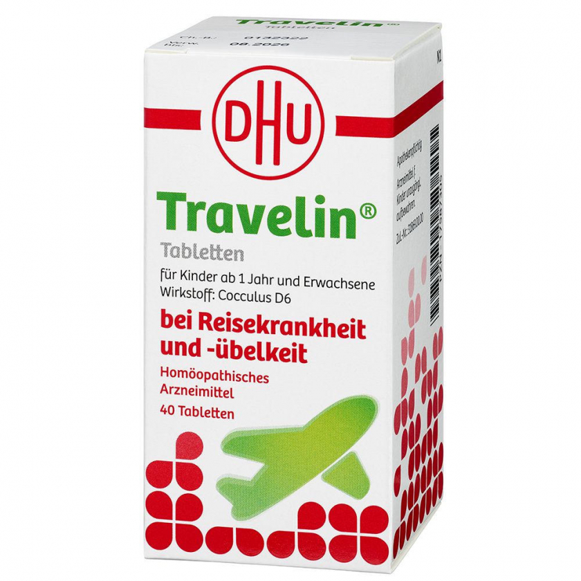 DHU Travelin® - гомеопатическое лекарственное средство для лечения рейс-болезни и тошноты при путешествиях. Таблетки содержат активное вещество Anamirta cocculus D6 и подходят для взрослых и детей от 1 года. Принимаются перорально при симптомах укачивания