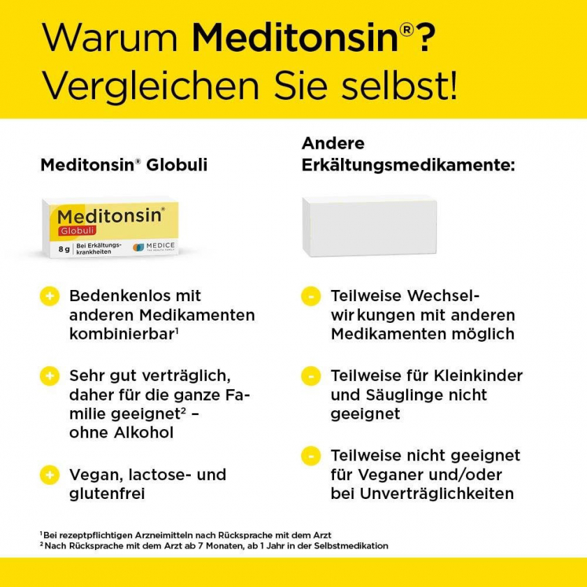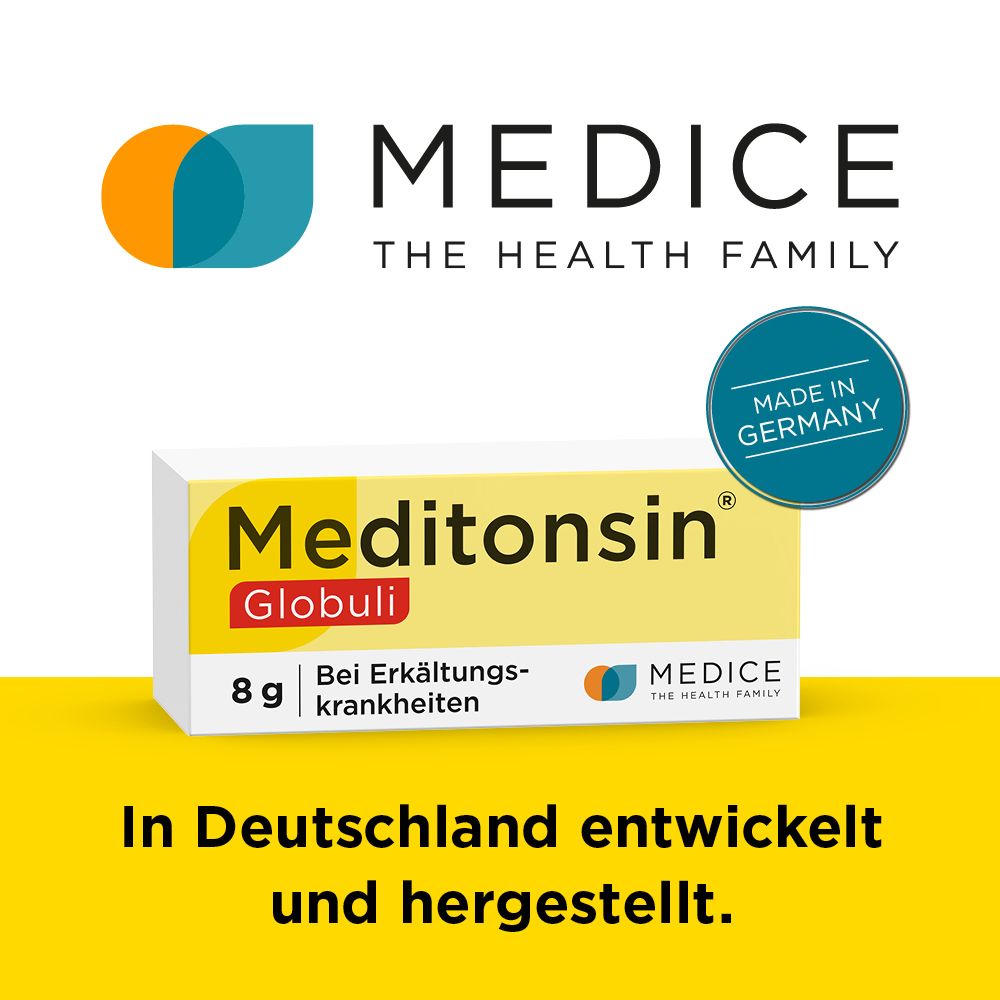 Гомеопатический препарат Meditonsin® Globuli для лечения первых признаков простуды у всей семьи. Натуральное средство при острых воспалениях горла, носа и гортани. Подходит для взрослых и детей от 7 месяцев. Гранулы для рассасывания с растительными компонентами в гомеопатических разведениях.