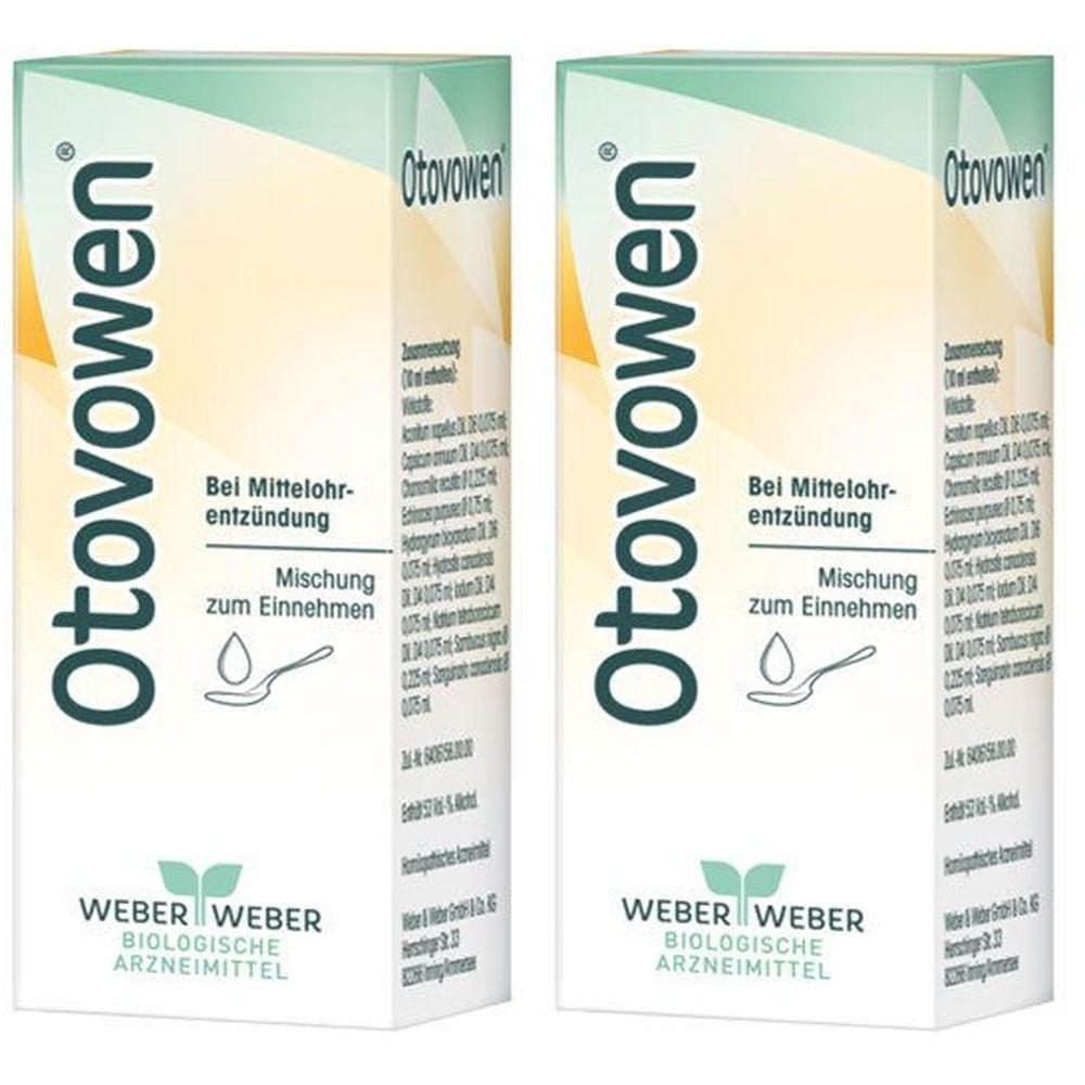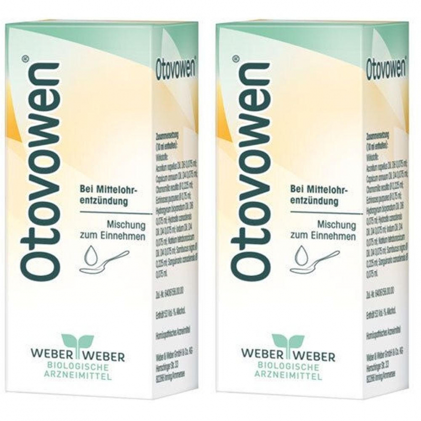 Otovowen® - гомеопатическое средство для приема внутрь при отите и насморке. В наборе 2 флакона по 50 мл. Подходит для взрослых и детей с разной дозировкой по возрасту. Произведено в Германии компанией WEBER & WEBER.
