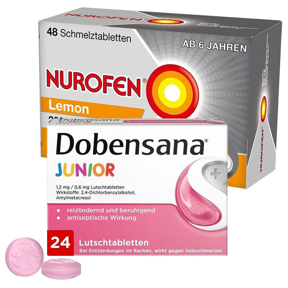 NUROFEN® 200 mg Schmelztabletten Lemon + Dobensana® Junior Lutschtabletten Erdbeergeschmack