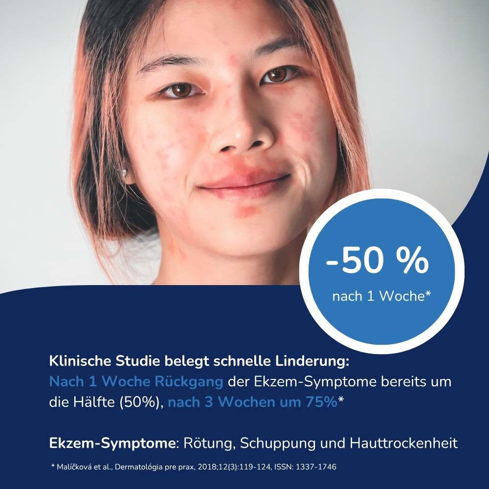 Кортизон-свободный медицинский крем для лечения экземы лица с клинически доказанной эффективностью. Уменьшает покраснение, шелушение и сухость кожи на 72% за 3 недели. Содержит церамиды, глицерин, сквалан, пантенол и бисаболол для восстановления кожного барьера. Без отдушек, красителей и консервантов.
