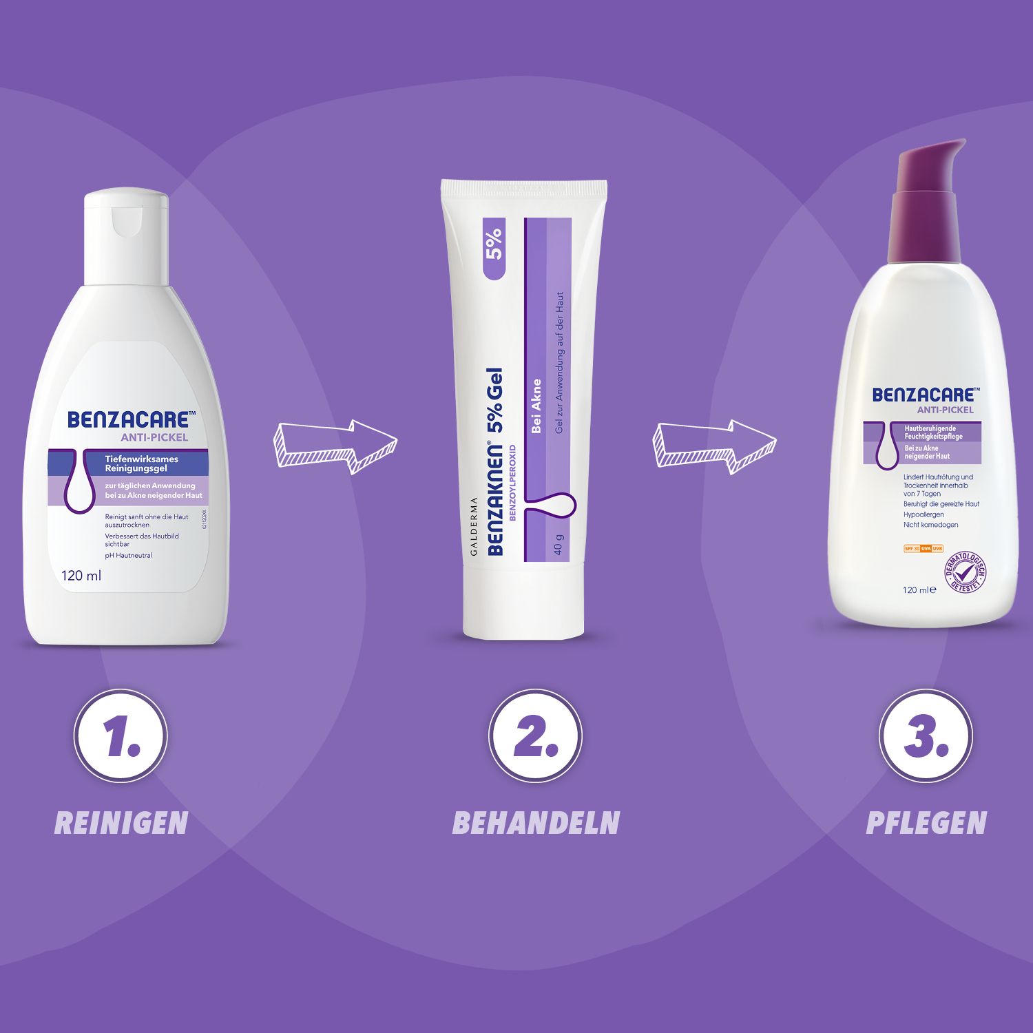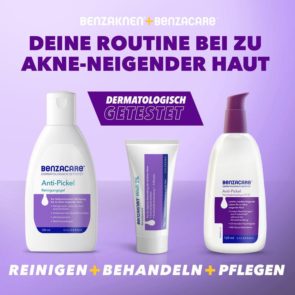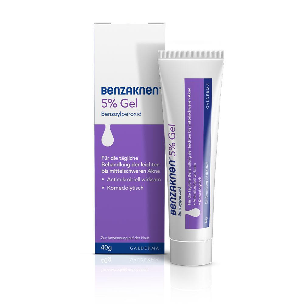 Benzaknen 5% Gel - лечебный гель с бензоилпероксидом для эффективной терапии легкой и средней степени акне. Уничтожает 94% бактерий акне, уменьшает воспаления, комедоны и улучшает состояние кожи за 1-2 недели. Подходит для подростков от 12 лет и взрослых.
