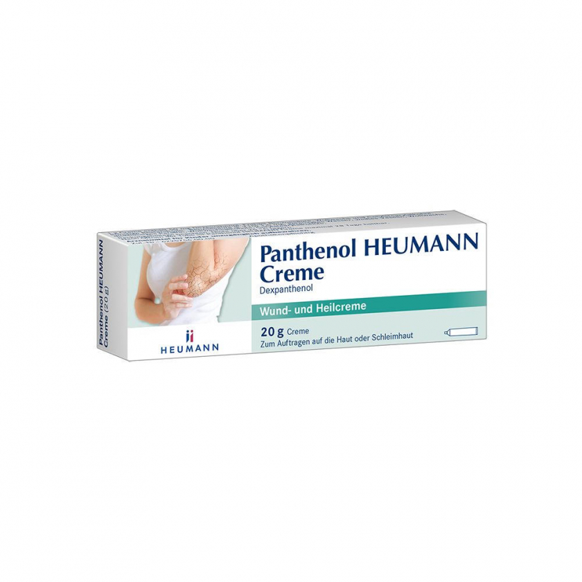 Panthenol Heumann Creme® - медицинский крем для поддержки заживления поверхностных ран кожи и слизистых оболочек. Содержит декспантенол (производное витамина B5), обладает противовоспалительным и регенерирующим действием. Применяется при легких повреждениях кожи для ускорения восстановления тканей.
