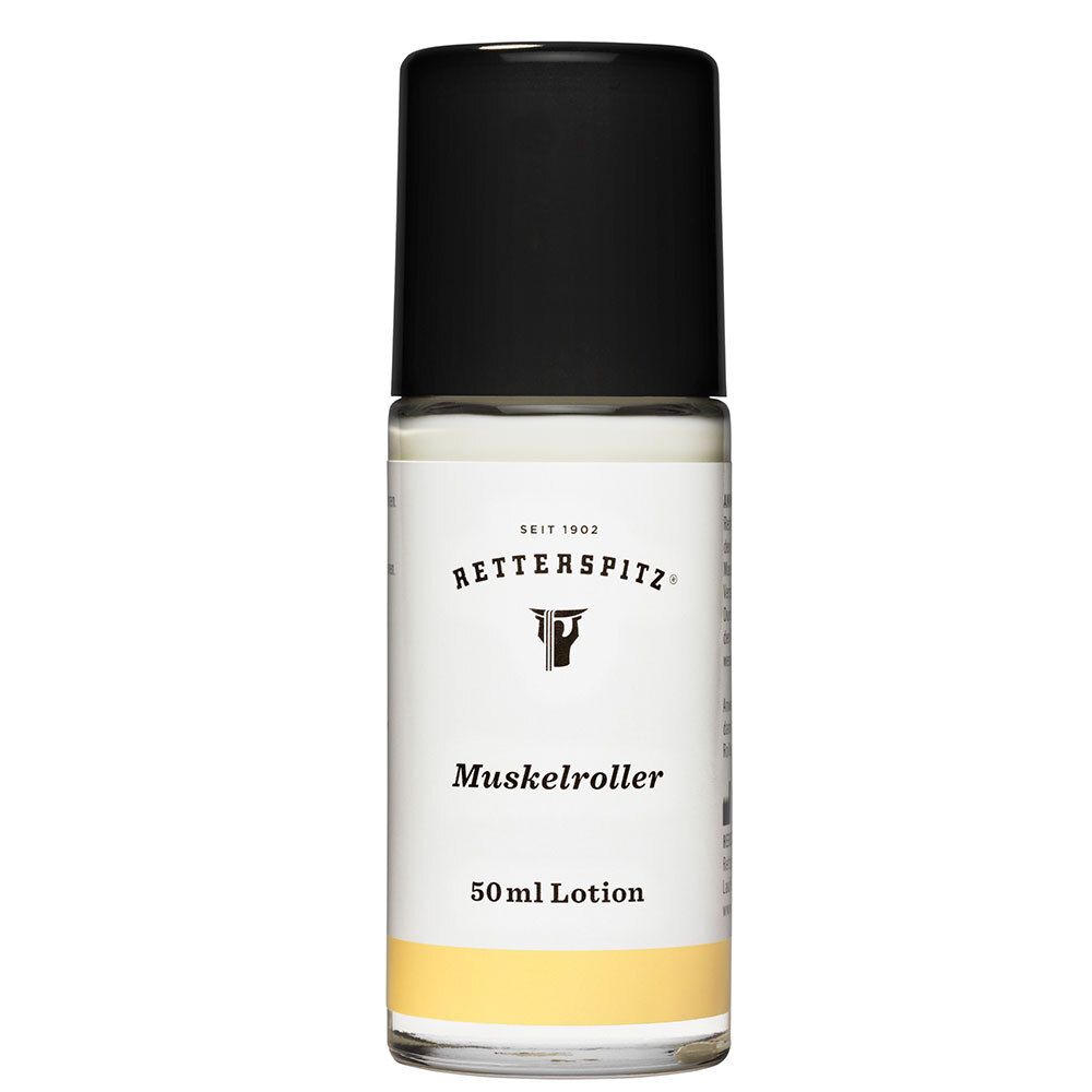 RETTERSPITZ® Muskelroller - роликовое средство для быстрого облегчения мышечных, сухожильных и суставных болей, а также напряжений. Содержит натуральные эфирные масла эвкалипта, мяты, розмарина и настойку арники. Компактный и удобный для использования в дороге или во время занятий спортом.