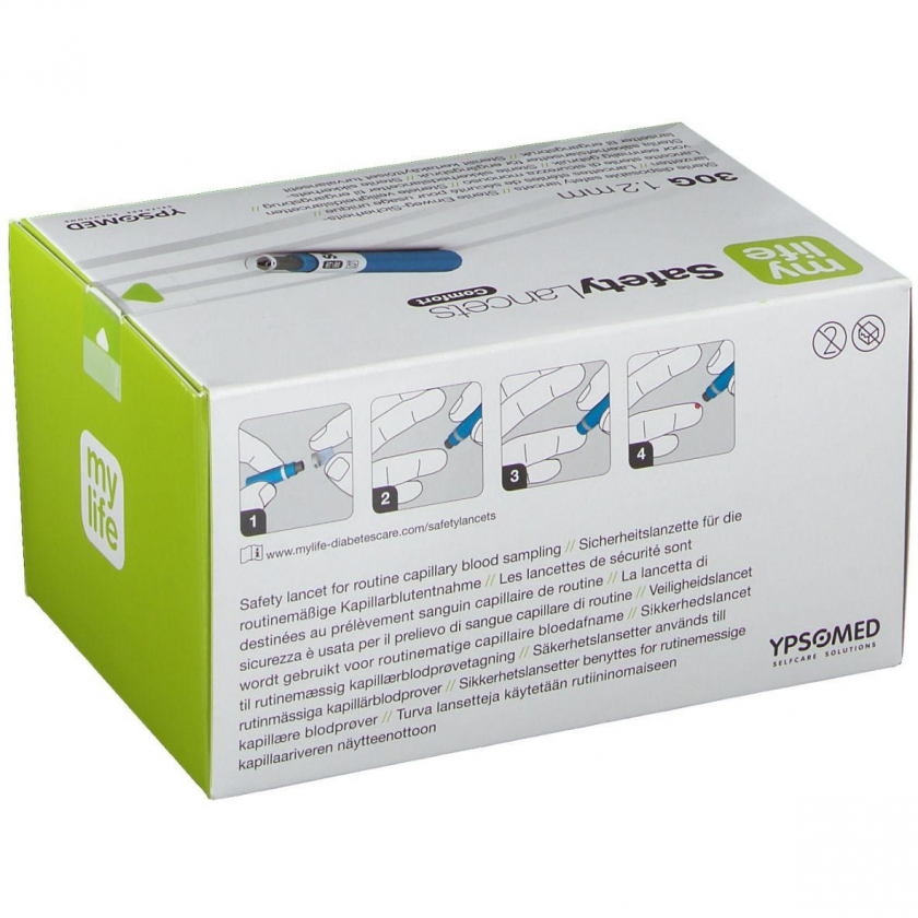 Стерильные одноразовые ланцеты mylife SafetyLancets Comfort для безопасного взятия капиллярной крови. Имеют инновационный запатентованный дизайн с одноразовой функцией спуска и защитным колпачком. Подходят для контроля уровня сахара в крови и других диагностических тестов в медицинских учреждениях и домашних условиях. Иглы 30G с глубиной прокола 1,2 мм обеспечивают комфорт и хороший кровоток.