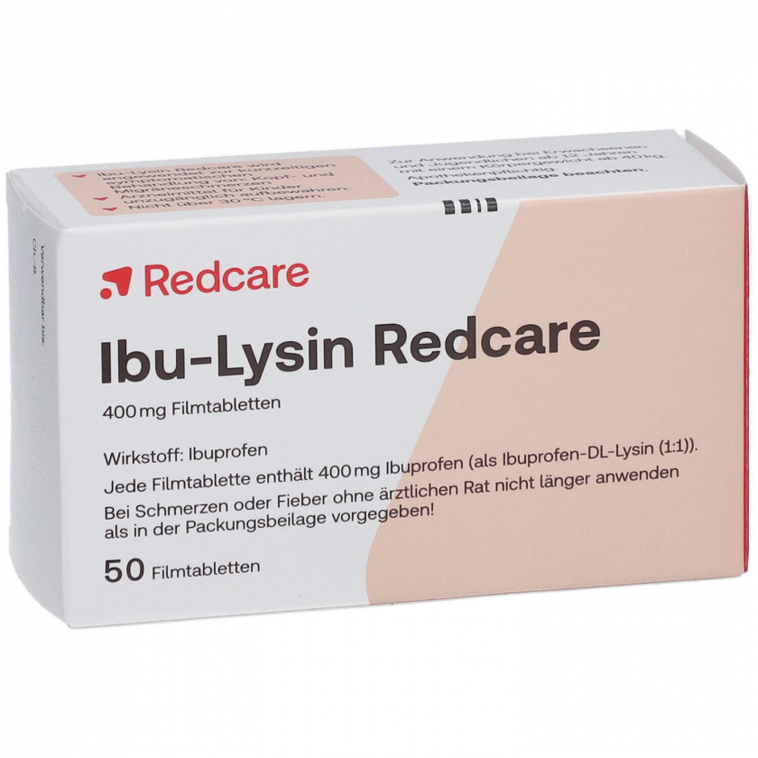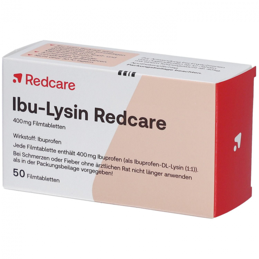 Ibu-Lysin Redcare 400 мг - противовоспалительное и обезболивающее средство для краткосрочного симптоматического лечения головной боли и мигрени у взрослых и подростков от 12 лет. Содержит ибупрофен в форме лизиновой соли для более быстрого действия. Выпускается в виде пленочных таблеток, по 50 штук в упаковке.