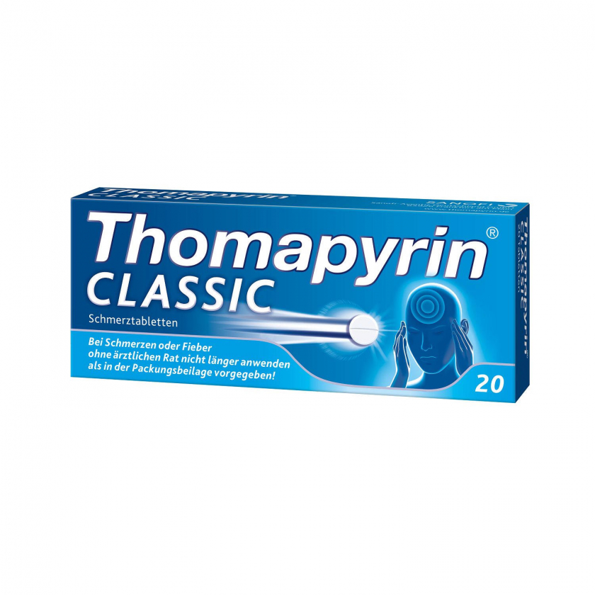 Thomapyrin CLASSIC Schmerztabletten bei akuten Kopfschmerzen | Bewährte 3-fach Kombination | ASS, Paracetamol & Coffein