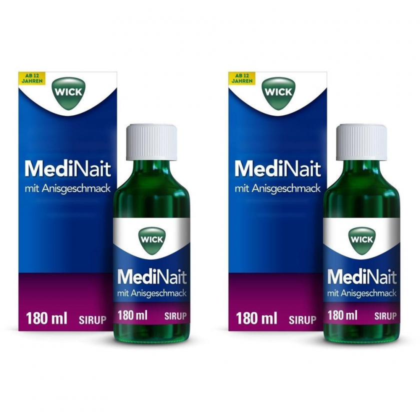 WICK MediNait - безспиртовой сироп от простуды с анисовым вкусом для облегчения 6 симптомов: головной боли, ломоты в теле, боли в горле, лихорадки, насморка и кашля. Принимается вечером перед сном для облегчения симптомов в течение ночи. Подходит для взрослых и подростков от 12 лет.