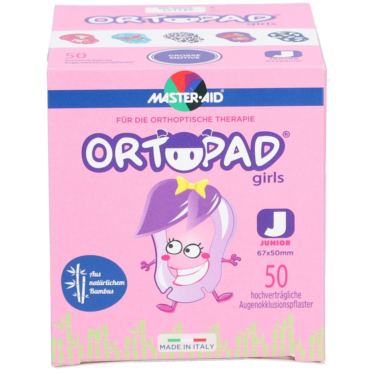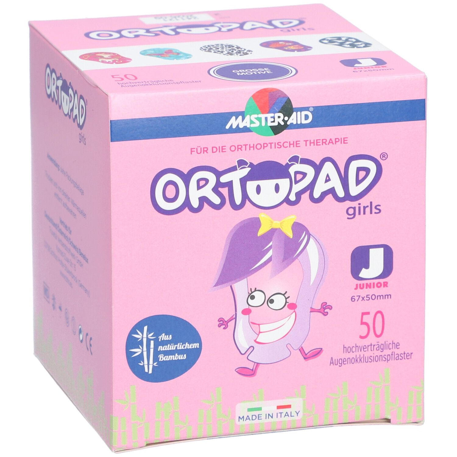Детские окклюзионные пластыри для глаз с яркими рисунками для девочек. Изготовлены из бамбукового волокна, имеют анатомическую форму с носовыми прорезями, светонепроницаемы и воздухопроницаемы. Используются для лечения амблиопии (ленивого глаза) у детей.