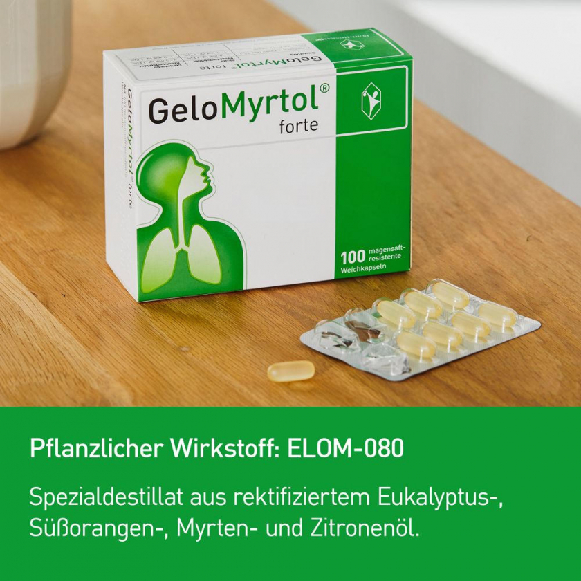 GeloMyrtol® forte - растительный муколитический препарат в форме мягких капсул для лечения синусита и бронхита. Содержит комбинацию эфирных масел ELOM-080, которые разжижают мокроту, облегчают откашливание и активируют естественный механизм очищения дыхательных путей. Подходит для взрослых и детей с 6 лет при острых и хронических заболеваниях дыхательных путей