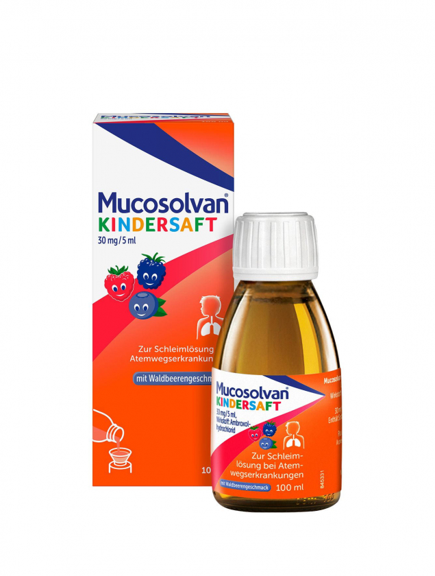 MUCOSOLVAN Kindersaft - детский сироп от кашля с лесным ягодным вкусом для разжижения и выведения мокроты. Содержит амброксол, который разжижает слизь и стимулирует движение ресничек дыхательных путей. Подходит для детей от 2 лет и подростков при остром и хроническом кашле с образованием вязкой мокроты.