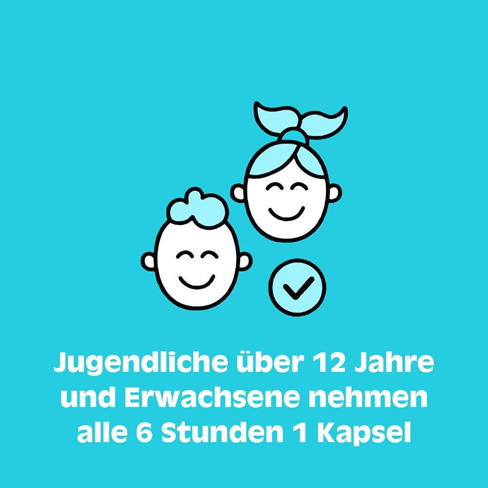 Принимать по 1 капсуле каждые 6 часов, не более 4 капсул в сутки, запивая водой, не разжевывая