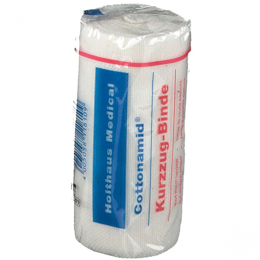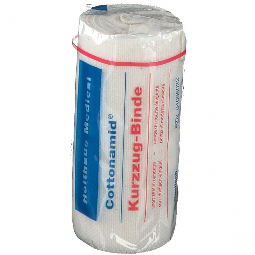 Cottonamid Kurzzug-Binde - это медицинская компрессионная бинтовая повязка размером 10 см х 5 м, предназначенная для создания стабильных компрессионных повязок при лечении различных медицинских состояний, требующих сжатия тканей.