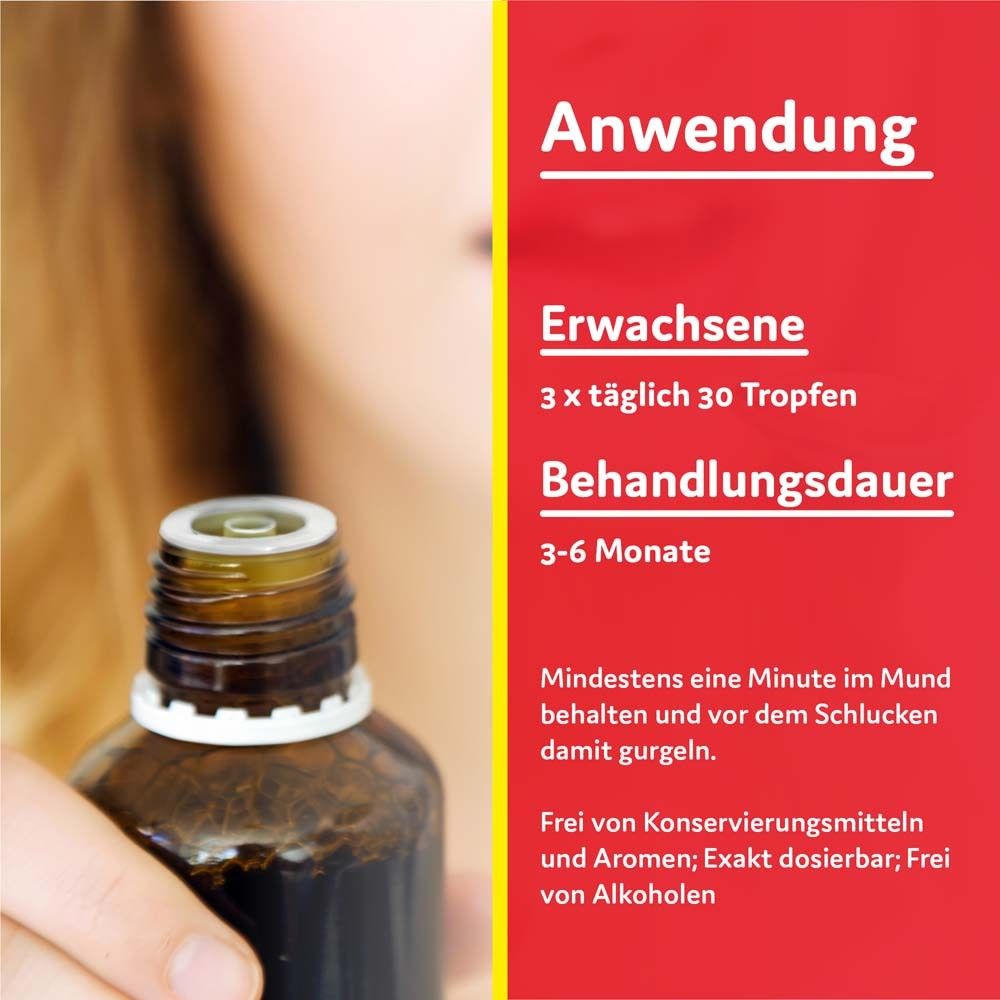 Способ применения: Принимать 3 раза в день по 30 капель: утром после пробуждения, в обед перед едой и вечером перед сном. Держать препарат во рту одну минуту и полоскать горло перед проглатыванием
