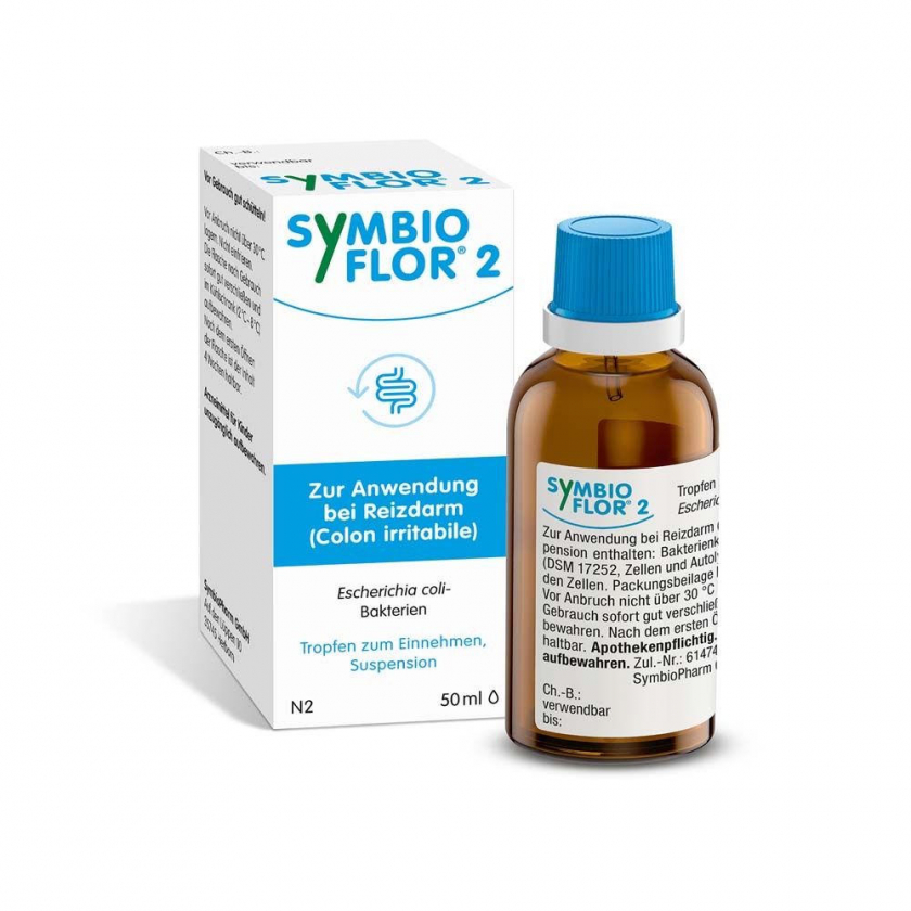 Symbioflor® 2 - пробиотическое лекарственное средство для лечения синдрома раздраженного кишечника и восстановления микрофлоры. Содержит автолизат бактерий Escherichia coli. Применяется взрослыми в виде капель во время еды. Курс лечения составляет 8 недель. Имеет противопоказания и возможные побочные эффекты