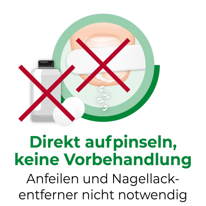 Наружное применение: наносить 1 раз в день тонким слоем на пораженный ноготь и окружающую кожу (5 мм), дать высохнуть 30 секунд. Не смывать в течение 6 часов после нанесения.