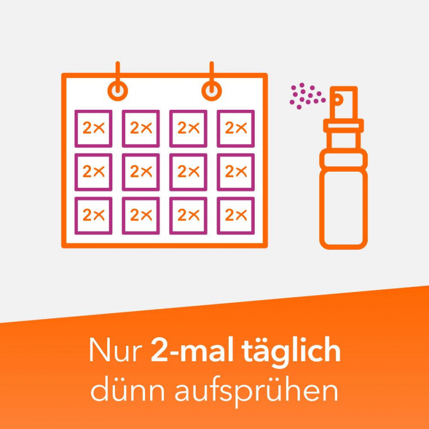 Способ применения: Наружное применение: распылять тонким слоем на пораженные участки кожи 2 раза в день. При каждом применении нажимать на распылительную головку 1-2 раза. Расстояние распыления 10-30 см. Лечение продолжать не менее 4 недель, даже после исчезновения симптомов