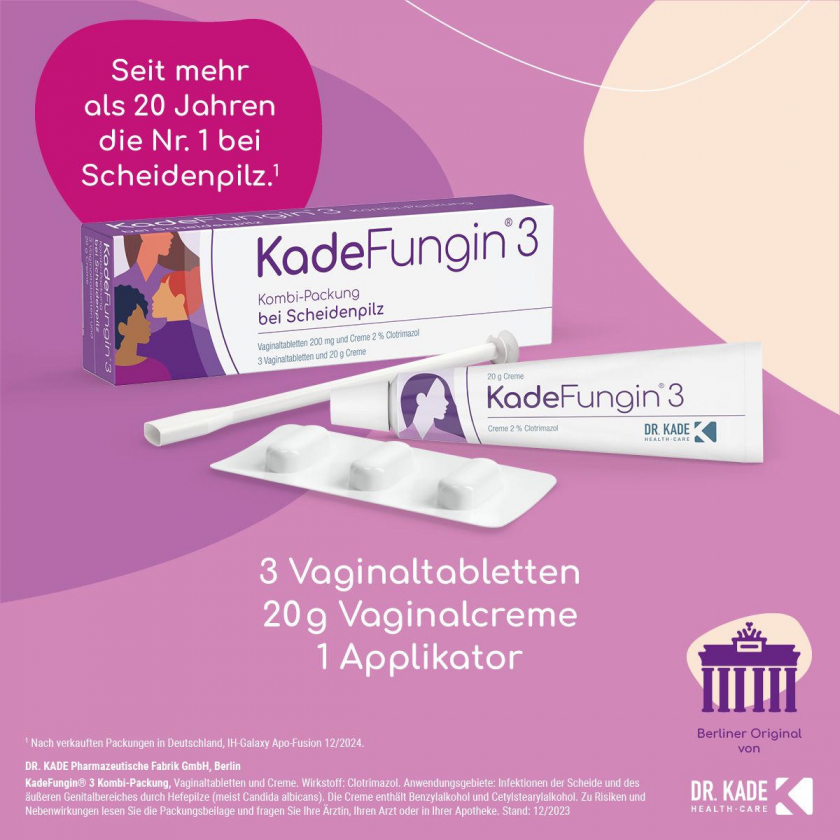 KadeFungin 3 Kombi-Packung - Vaginaltabletten und -creme zur Behandlung von Scheidenpilz in 3 Tagen