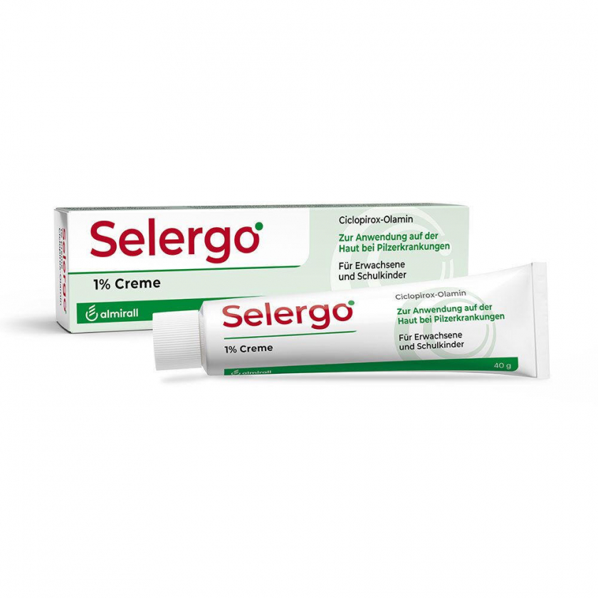Противогрибковый крем Selergo 1% с действующим веществом циклопирокс оламин для лечения грибковых заболеваний кожи и стоп. Обладает широким спектром противогрибкового действия, применяется наружно 2 раза в день. Подходит для взрослых и детей школьного возраста, не рекомендуется детям до 6 лет.