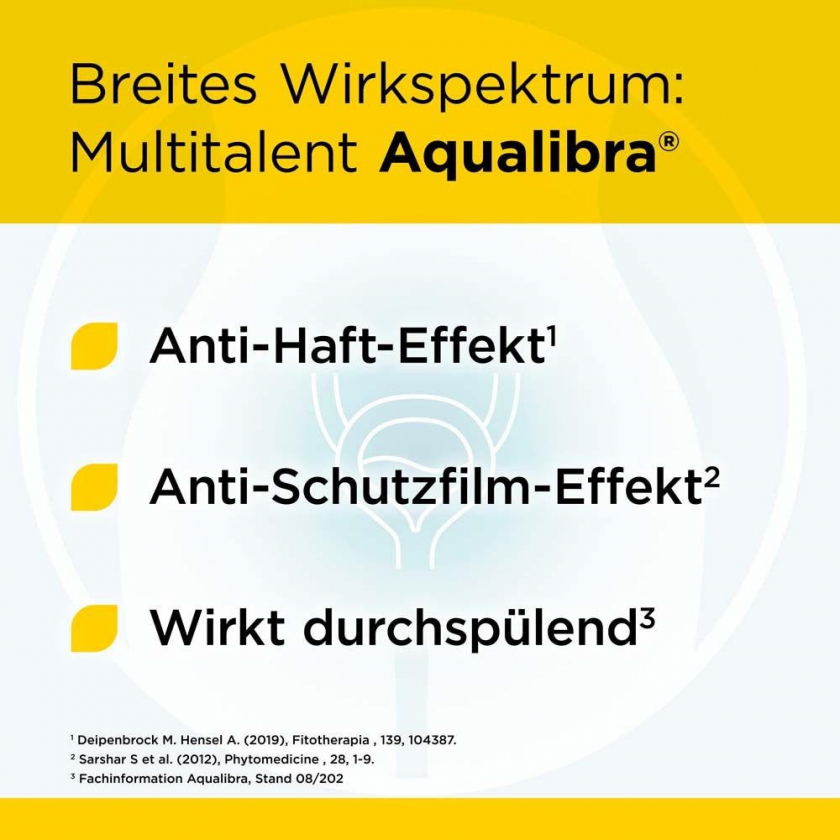 Растительное лекарственное средство Aqualibra для лечения и профилактики циститов и инфекций мочевыводящих путей. Содержит комбинацию трех растительных экстрактов: золотарника, дрока красильного и ортосифона. Обладает противовоспалительным, антибактериальным, мочегонным и обезболивающим действием. Подходит для взрослых и подростков от 12 лет.