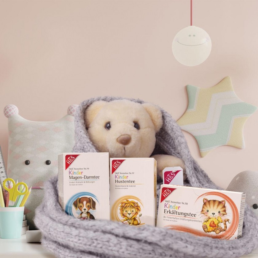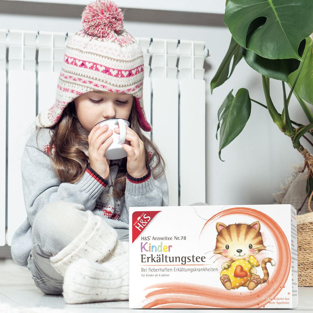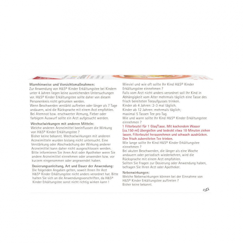 H&S® Kinder Erkältungstee - травяной чай для детей при простудных заболеваниях с липовым цветом, цветками бузины и тимьяном. Применяется при лихорадочных простудных заболеваниях, когда желательно пропотеть. Подходит для детей от 4 лет.