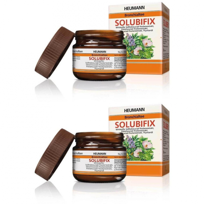 Травяной чай Heumann Bronchialtee Solubifix® T традиционно применяется для поддержки отхождения мокроты в дыхательных путях. Содержит экстракты солодки, алтея, первоцвета и масло тимьяна. Приготовляется как горячий напиток, рекомендуется взрослым по 3-6 чашек в день. Без глютена