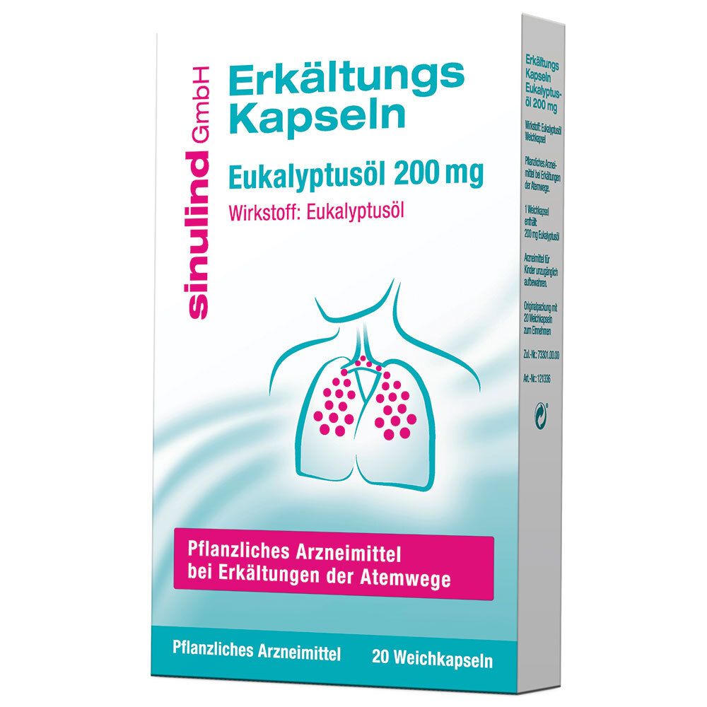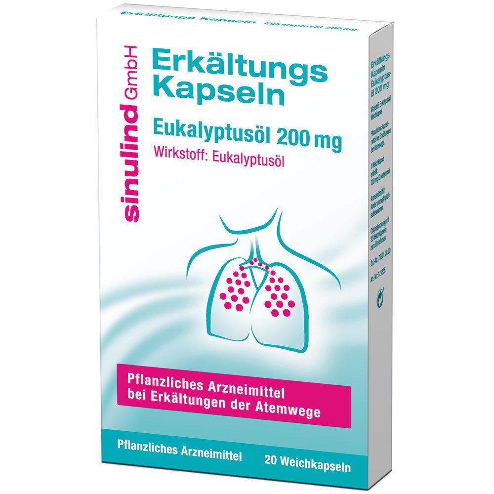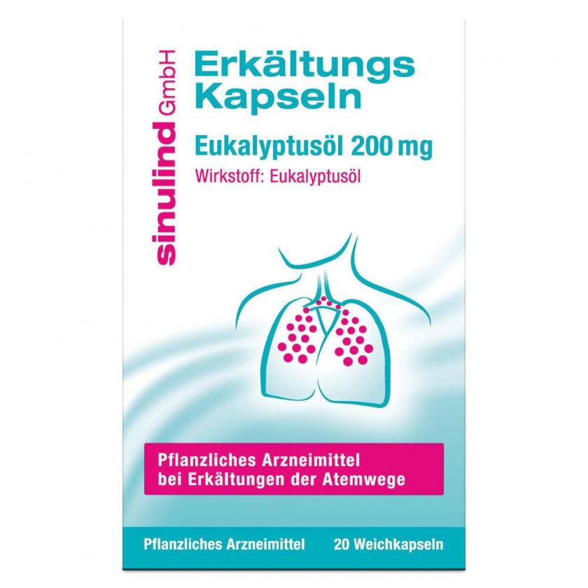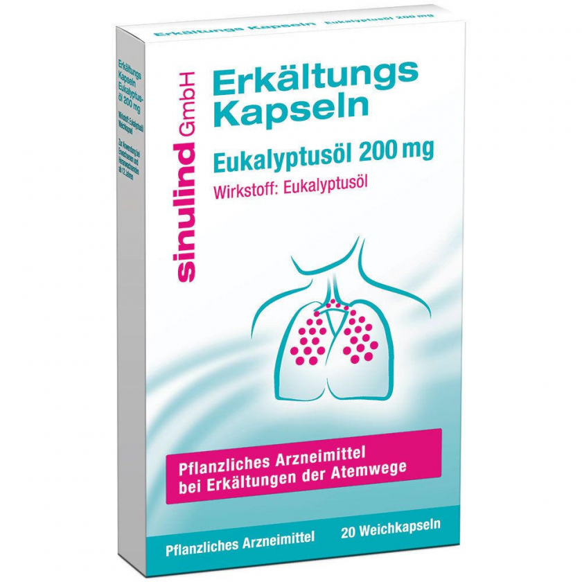 Мягкие капсулы sinulind® Erkältungs Kapseln с эвкалиптовым маслом для облегчения симптомов простуды. Способствуют освобождению носа, головы и бронхов, разжижают вязкую мокроту, обладают антибактериальным действием. Предназначены для взрослых и подростков старше 12 лет.