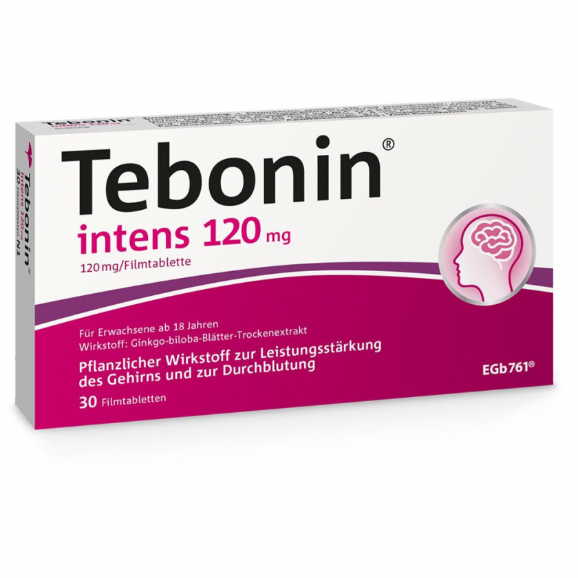 Tebonin® intens 120 mg - лекарственный препарат на основе экстракта гинкго билоба для поддерживающего лечения тиннитуса (ушного шума), улучшения памяти и концентрации, лечения головокружения. Применяется при нарушениях кровообращения и возрастных изменениях. Растительный препарат с доказанной эффективностью и хорошей переносимостью.