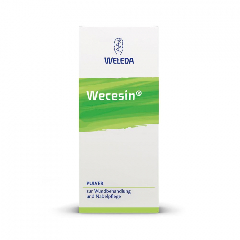 Wecesin® Pulver - лечебный порошок для ускорения заживления ссадин, экзем и ухода за пупком новорожденных. Содержит натуральные растительные компоненты (арника, календула, эхинацея) и минеральные вещества, обладает противовоспалительным и ранозаживляющим действием.